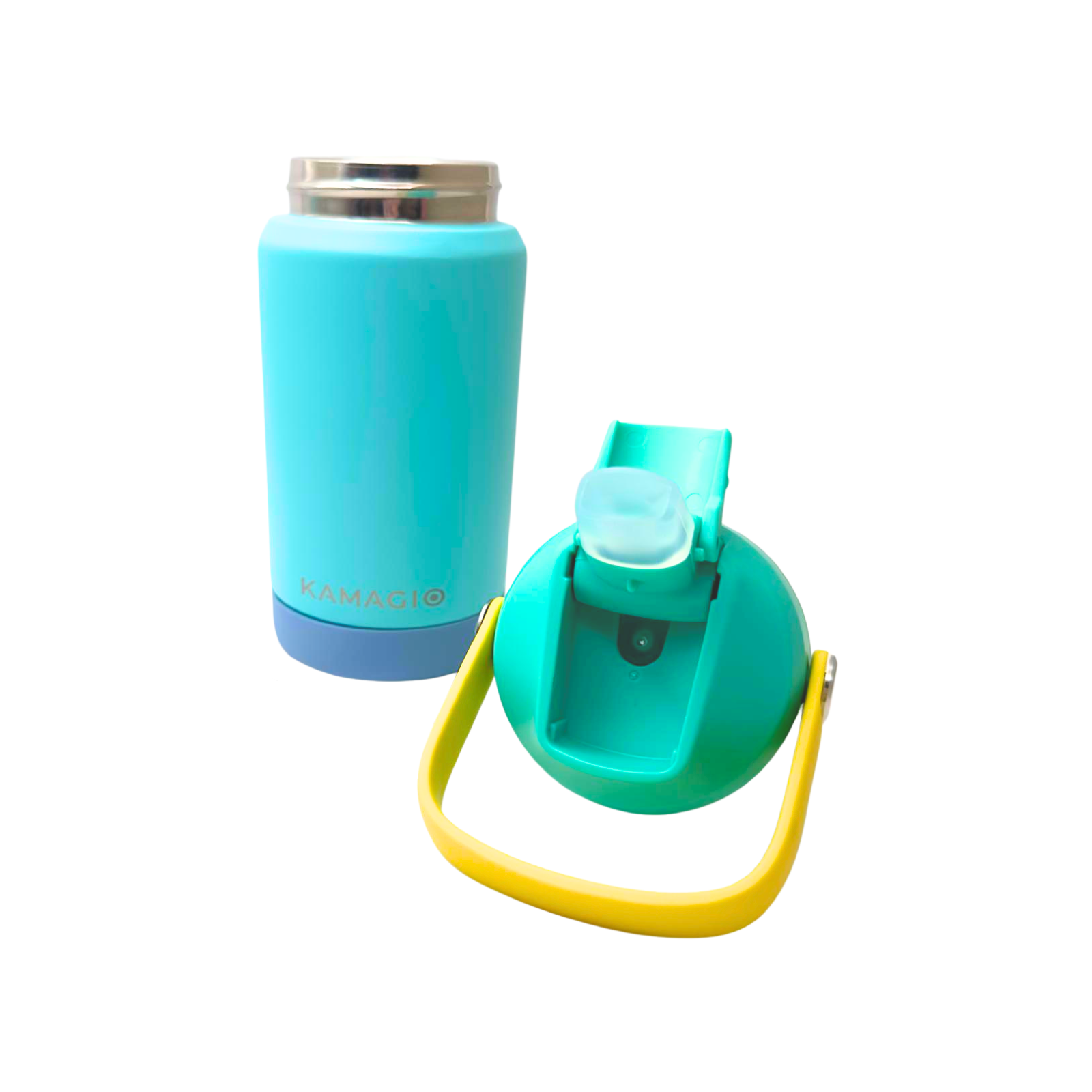 The KAMAGIO Kids Vacuum Flask 12 oz / 350 ml is specially designed for children. Thanks to its double-wall vacuum insulation, it keeps drinks hot or cold for up to 24 hours, making it ideal for school, trips, or sports activities.